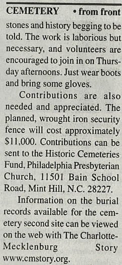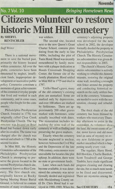 Used with permission of the Mint Hill Post, 8 Nov 2003